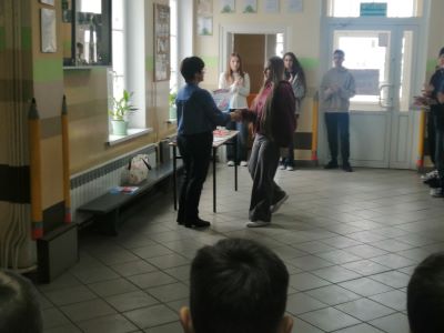 Doceniono również młodych czytelników aktywnie korzystających ze szkolnej biblioteki. Wyróżnienia za czytelnictwo trafiły do uczniów, którzy z pasją sięgają po książki i rozwijają swoje zainteresowania literackie. Najlepszą czytelniczką została Michalina Jerzewska z V klasy.